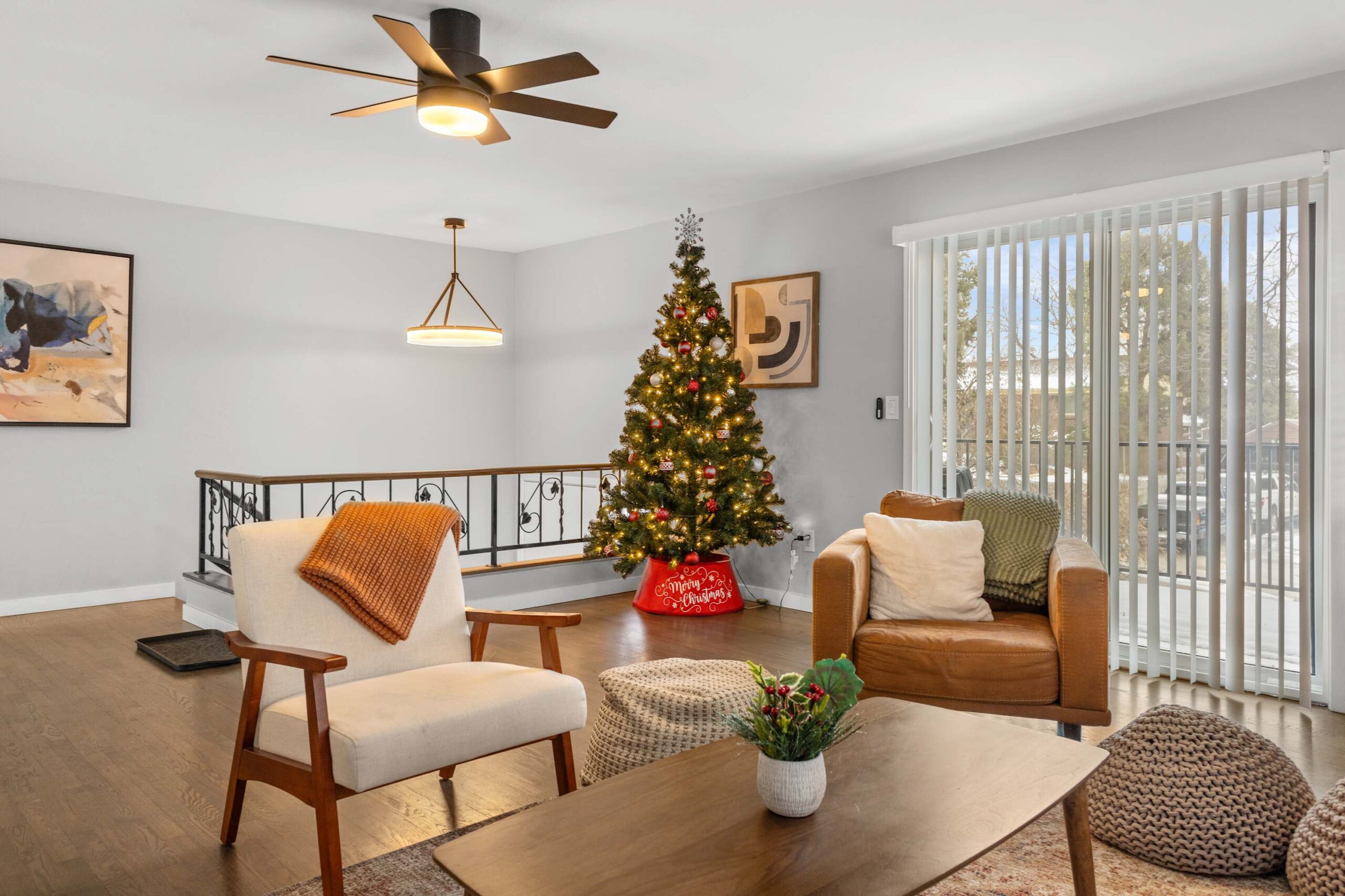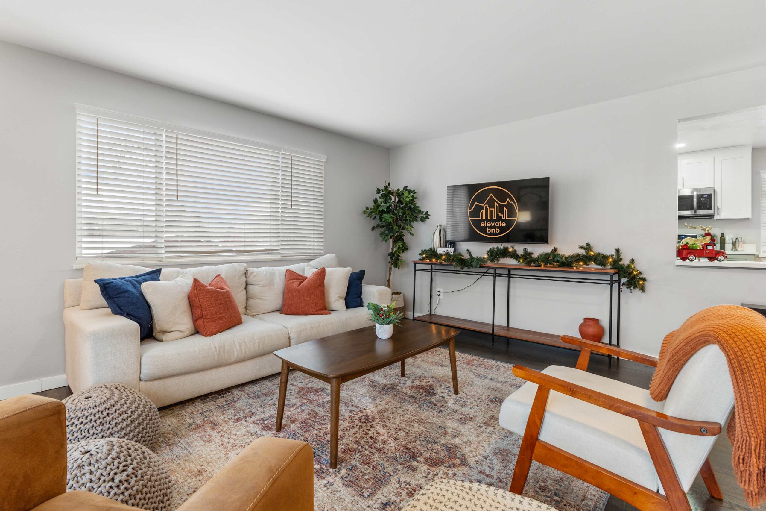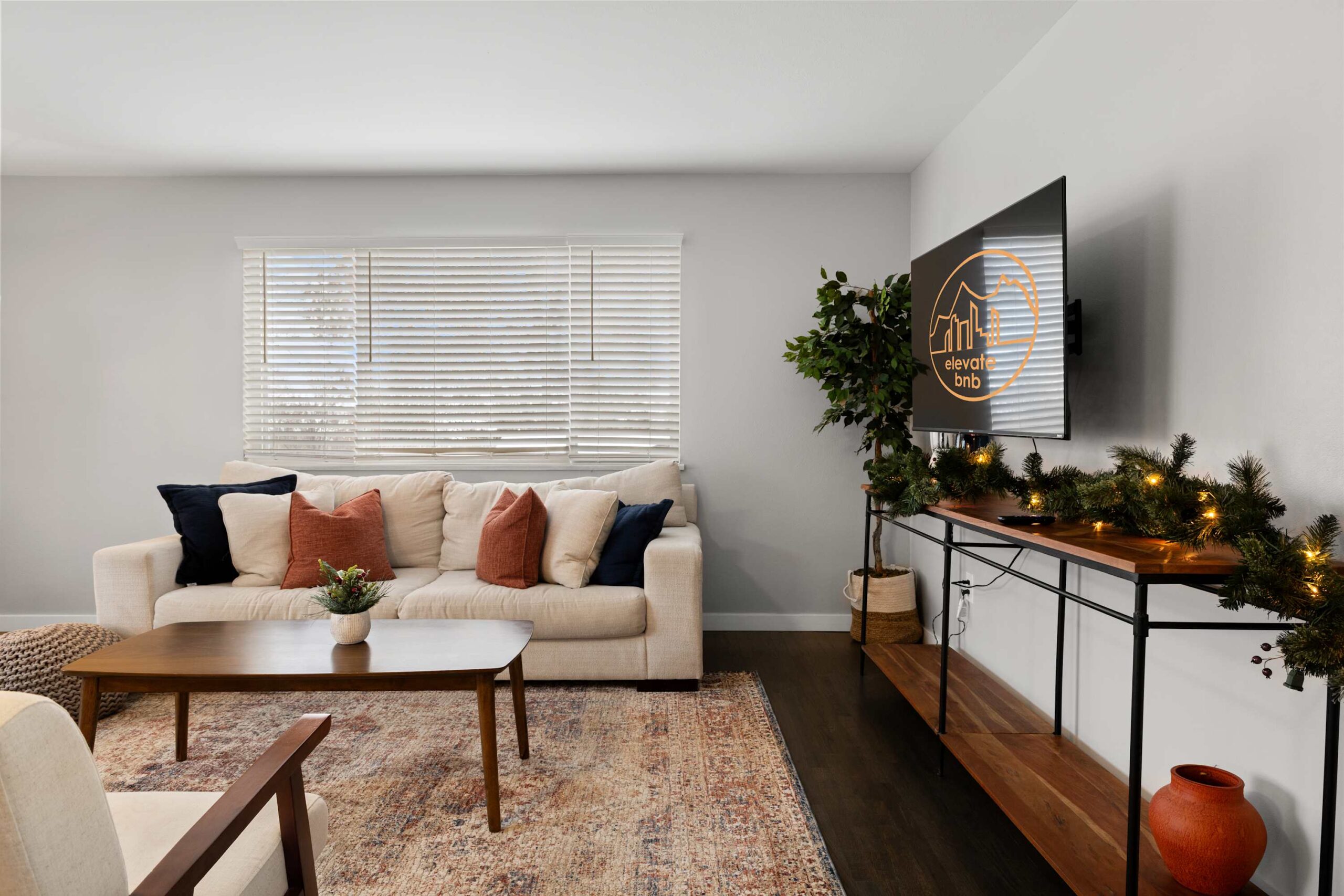 KEY FEATURES: - 5 large bedrooms; 3 Queens, 1 King, 1 Full-Sized bunk bed - 3 full bathrooms w/ shower/tub combos + complimentary toiletries - Full kitchen w/ stainless steel appliances + 6 person dining table - 2 large living spaces; comfy sofas + chairs, Roku HD TV + foosball table - 2 Private Decks- large fully-fenced backyard + four-person hot tub - High-speed WiFi + designated workspace - Free parking in driveway, garage or street - Central location in a quiet neighborhood; walk to public transportation, parks or the mall BEDROOMS & BATHROOMS This spacious split-level home features five lovely bedrooms on two floors, each designed with your comfort in mind. The master bedroom features a comfortable Queen bed, ceiling fan, bright windows and a closet. This room has an attached bathroom with a standing shower and sliding barn door. There are 2 more comfortable Queen bedrooms on the main floor of the home. Each room has light-blocking shades, extra blankets, and a closet for your luggage. There is a sleek modern bathroom across the hall which features double sinks and a shower/ bathtub combination so that you can choose between a relaxing soak or a refreshing shower. The remaining two bedrooms are downstairs in the finished basement. The King bedroom features a large King bed, standing mirror, a bench and a closet. The bedroom next to this one has a full-sized bunkbed. Each level on the bunkbed is a full-sized bed so there is plenty of room to spread out and get comfortable! The bunkbed room has a cozy chair and lamp as well as another closet for your belongings. Both of these bedrooms have windows as well, so they have plenty of light. There is a full bathroom next to these bedrooms that features another full bathtub/shower combo and is fully stocked with plush towels, soaps, shampoo and conditioner. KITCHEN & LIVING SPACES Experience the perfect blend of style and functionality in the spacious, updated kitchen and living areas. When you enter the home and go upstairs, you are greeted by a spacious living room with plenty of windows. This living room features a comfortable sofa and chairs and a gorgeous mountain view. The living room also has a large, HD Roku TV ready to stream all your favorite shows. There is a sliding door to a front deck off the living room- sit on the patio chairs and enjoy a cup of coffee while you watch the sun rise. Get out your laptop and get some work done at the desk in the living room. This desk has a desk chair, pens & pencils, and sticky notes. Letting even more light into the living room is the picture cut out leading into the kitchen. This cut out has a custom granite countertop and stools so you can enjoy a meal but still be in the living room. Through the entryway into the kitchen, you will find a bright, updated kitchen fully stocked with cookware, dishes, utensils and everything you need to create a masterpiece. The kitchen features a stainless-steel stove, refrigerator and microwave as well as a large sink and plenty of cabinets. The dining table in the kitchen has room for six people and is a great place to enjoy a meal with the family. Go downstairs to the finished basement and find the second living space. This room has a large foosball table, another HD Roku TV, a small dining table and two more comfy chairs. Challenge each other to a foosball tournament or send the kids downstairs to play while the adults hang out upstairs. This home has a large, 2 car garage that is accessible to guests through the basement. There is also a full laundry room with a new, full-sized washer and dryer, as well as detergent and dryer sheets. OUTSIDE SPACE Step outside and experience the ultimate in outdoor living with the large, private backyard. There’s easy access through the sliding glass door in the kitchen, and after a few steps, you’ll find yourself on the spacious back deck. This space has been recently upgraded with new patio furniture, including an outdoor dining table, and there's also a gas grill for when you're in the mood for BBQ. A few steps down into the yard and you are in front of the large, four-person hot tub. This hot tub was recently installed and gets cleaned and sanitized after each guest. Pull up an Adirondack chair or relax in the hot tub and enjoy the lovely Rocky Mountain weather. Brought to you by Elevate-BNB Management.