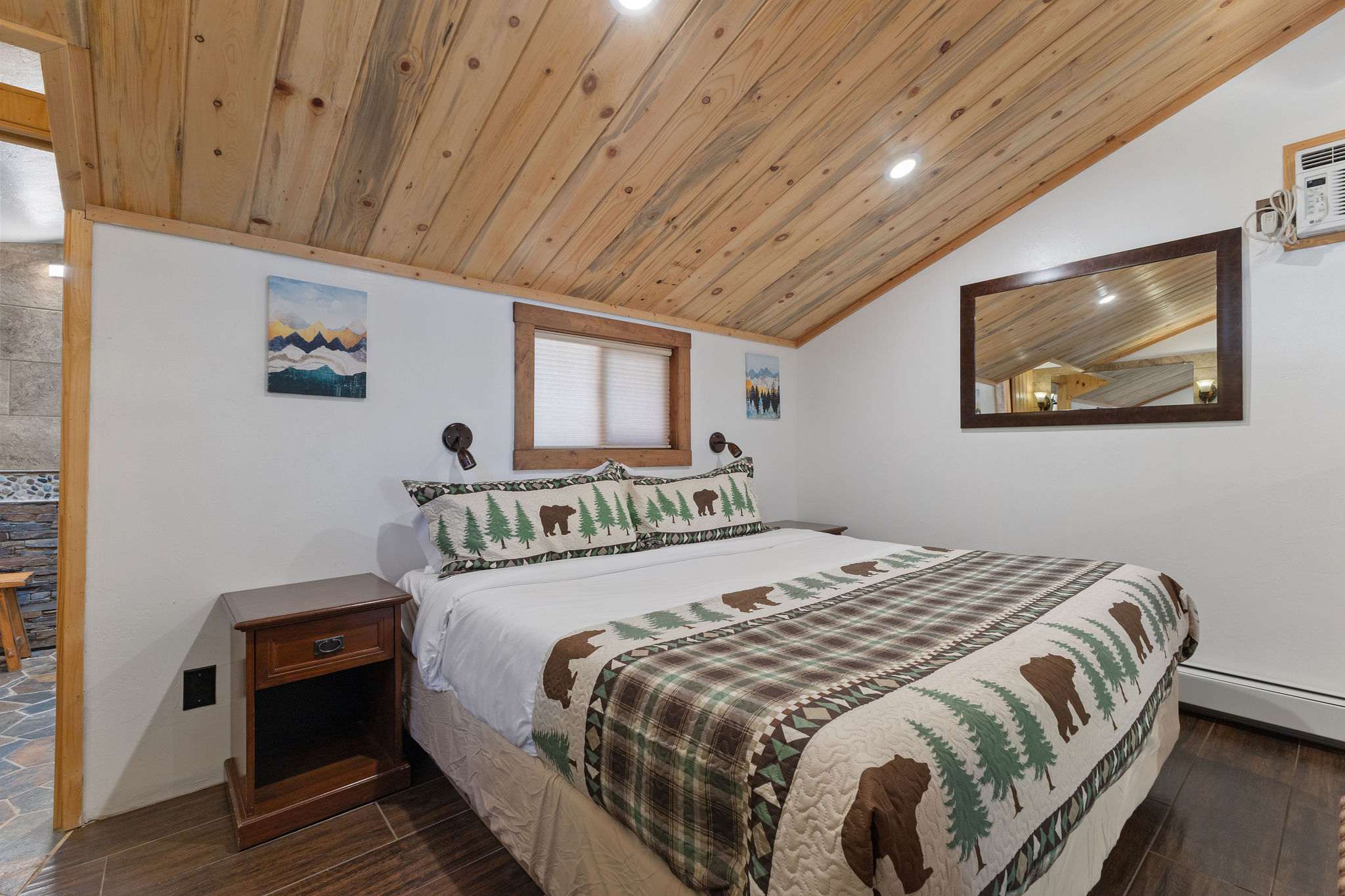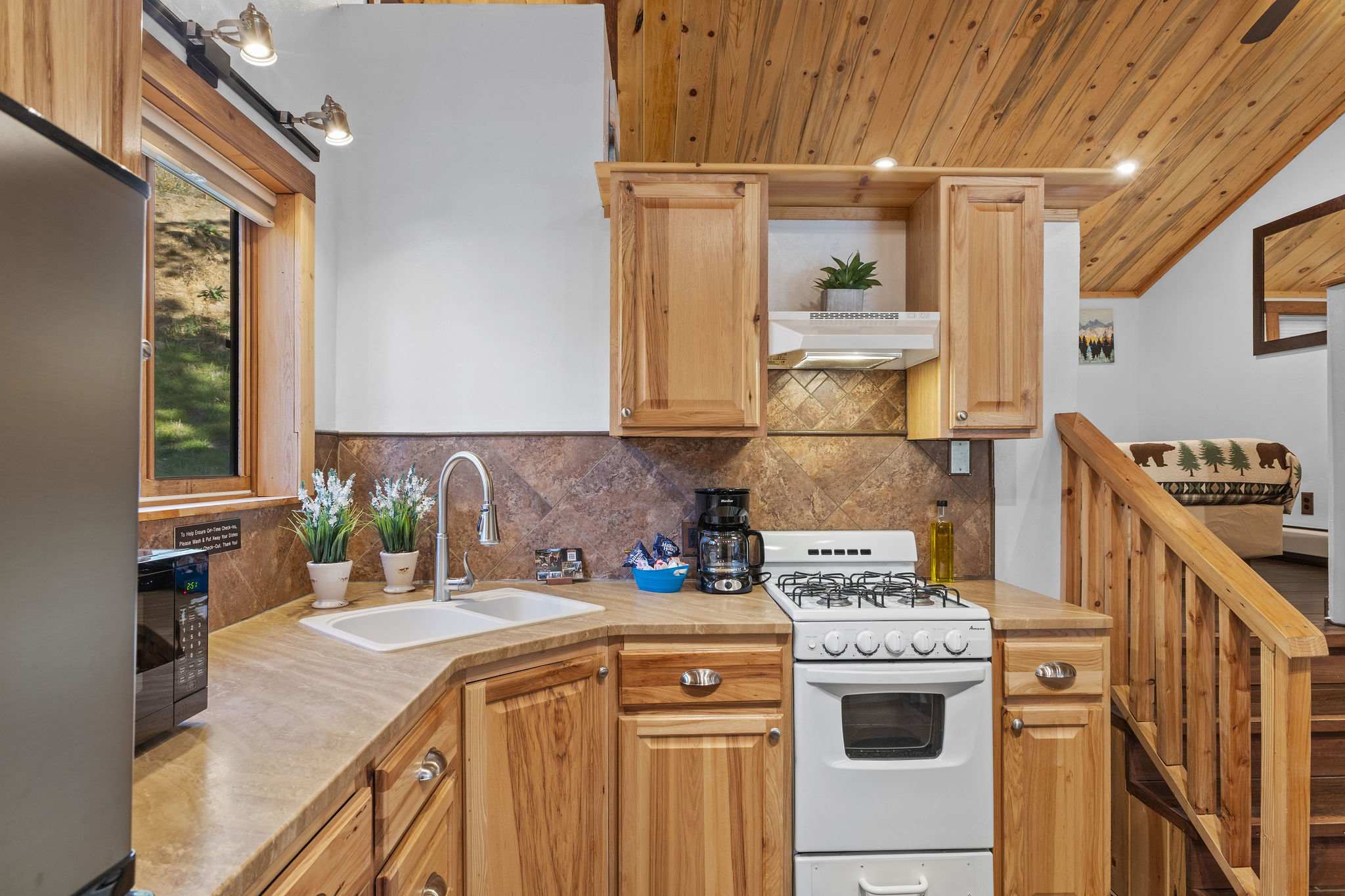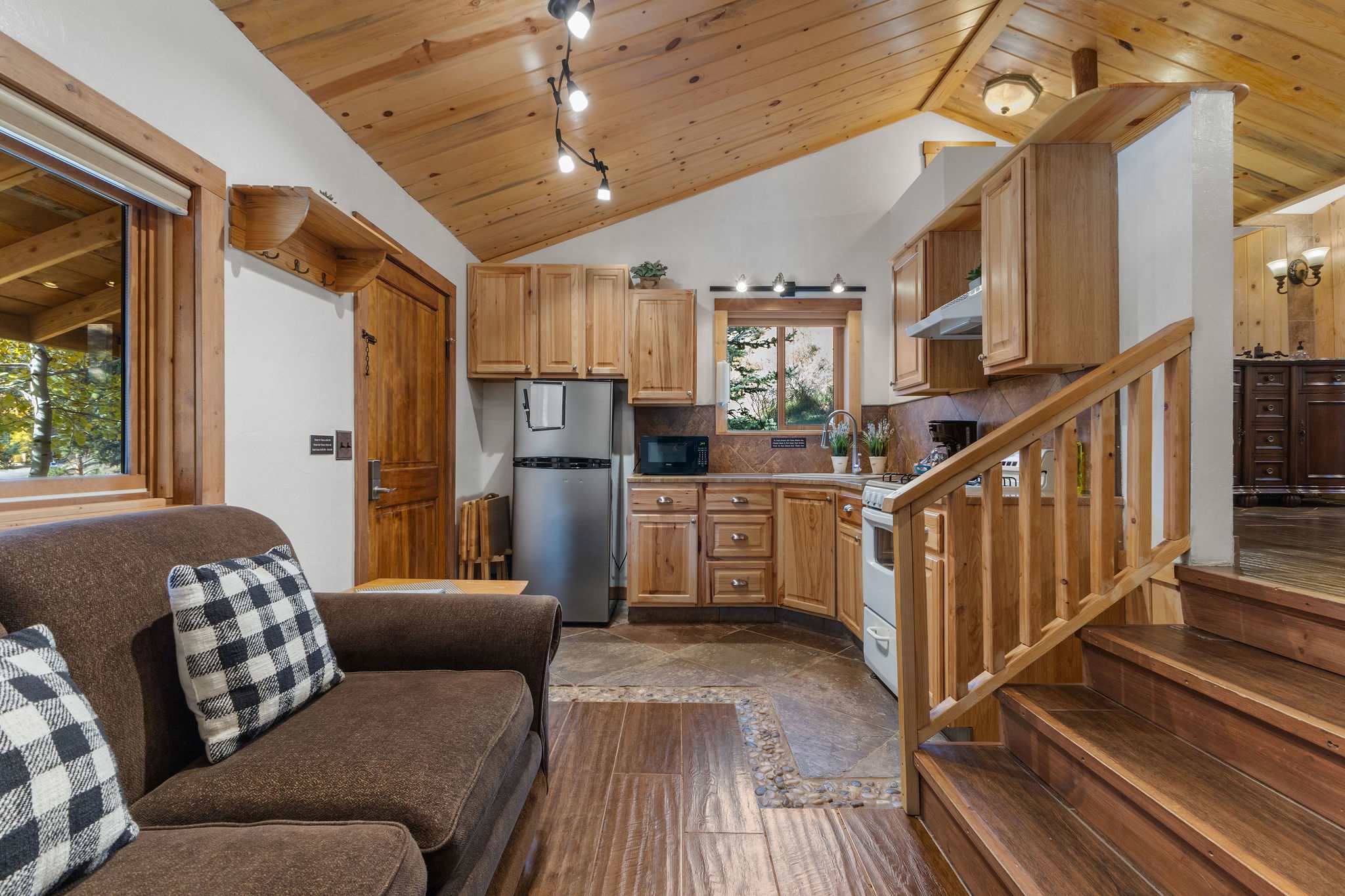 Guests can access the entire cabin as well as our playground and communal spaces on the resort property. There is a brand new community firepit and cornhole game located in front of the Grand Lodge by the playground. The Lobby, located at the front of the property by Fall River Road, offers a paid guest laundry room, pamphlets for local attractions, and a coffee bar. You can access the door with your cabin code.