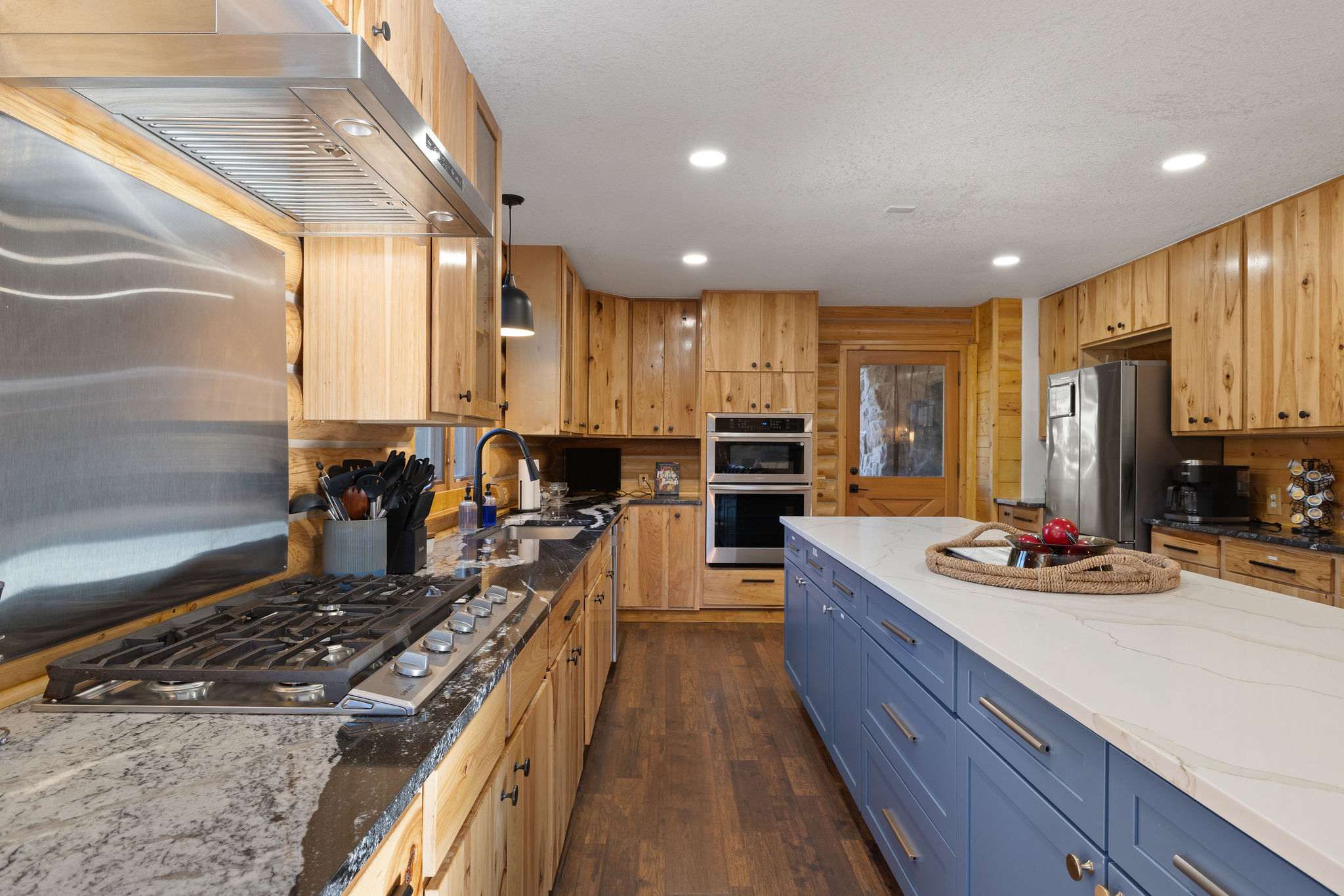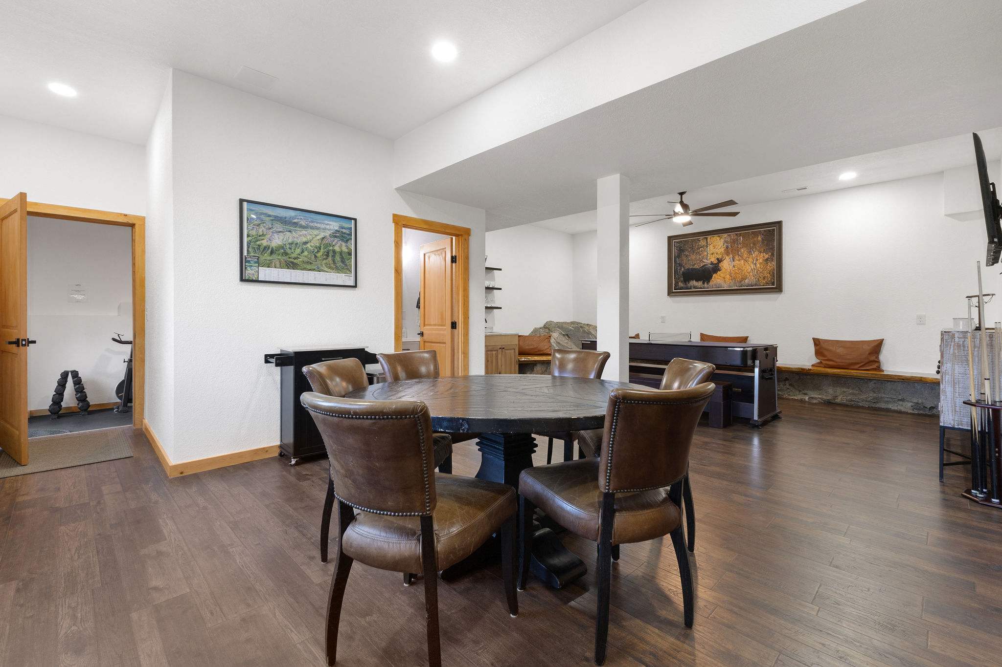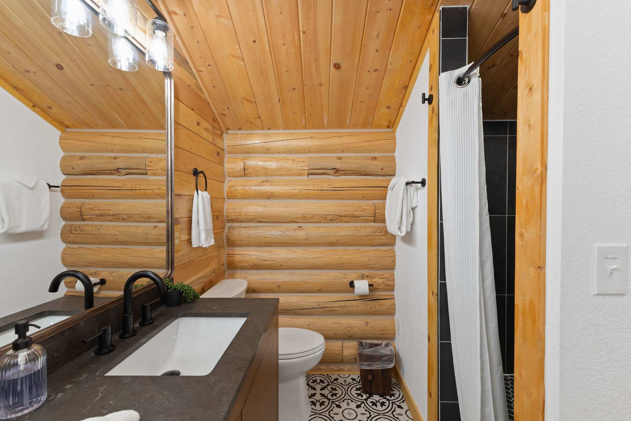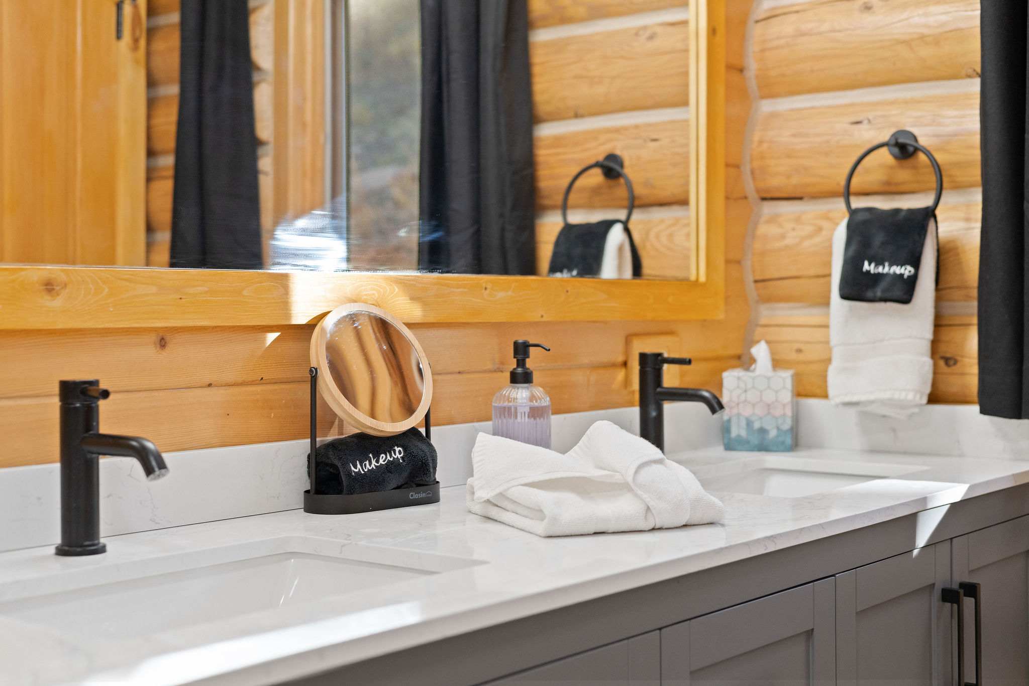 Key Amenities & House Layout at a Glance Our cabin is designed to deliver a luxury resort experience with all the comforts of home. Accommodation: 4 Bedrooms + Loft (Sleeps 13) Beds: 2 King, 1 Queen, 1 Twin Bunk w/ Trundle, 1 Loft Trundle, 1 Air Mattress Bathrooms: 4 Full, Modern Bathrooms—no waiting! Entertainment: Dedicated Game Room with 3-in-1 Table (Billiards, Ping Pong, Air Hockey). Fitness: Private, well-equipped Home Gym with mountain views. Outdoor Living: Two spacious decks, Propane Grill, and a cozy Fire Pit. Cooking: Fully Stocked Kitchen with Keurig Duo and high-end stainless steel appliances. Convenience: Kitchenette/Bar on the lower level, Full-Sized Washer & Dryer (detergent included). Climate: Evaporative Coolers for summer comfort & central as well as baseboard heaters in the winter. Parking: Ample parking with a convenient Circle Driveway. You'll never have to worry about space or comfort! Our cabin features 4 private bedrooms, a flexible loft, and 4 full bathrooms to accommodate your entire group with ease. Primary Suite: A luxurious sanctuary featuring a King Bed and a private ensuite full bathroom. Guest Suite 2: Another spacious room with a comfortable King Bed and easy access to the adjacent full bathroom. Guest Room 3: A cozy and well-appointed room featuring a Queen Bed. Bedroom 4 (Bunk Room): Ideal for kids or flexible sleeping, this room features a Twin Bunk Bed with an additional Twin Trundle underneath (sleeps 3). The Loft Area: A versatile upstairs space perfect for relaxing, featuring a daybed with a Twin Trundle pull-out as well as an air mattress. (sleeps 4). ~~~~~~~~~ Explore Hilltop House: Three Levels of Luxury Hilltop House is seamlessly arranged across three distinct levels, dedicating zones for entertainment, gathering, and peaceful rest. Ground Level: Entertainment & Fitness Hub Your headquarters for fun and fitness—the perfect spot for late-night games or an early morning workout. Game Room: Features a large HD Roku TV, board games, and the versatile 3-in-1 Game Table (billiards, ping pong, or air hockey). Private Gym: Work out with inspiring views! Fully equipped with a stationary bike, rower, weights, and an HD TV. Kitchenette & Bar: Includes a refrigerator, sink, and bar glasses for mixing drinks and snacks without heading upstairs. Full Bathroom: A convenient, beautifully tiled full bath with a spacious shower. Main Level: The Heart of the Home This open-concept level features vaulted ceilings, massive windows, and is bright, welcoming, and perfect for gathering. Living & Dining: A comfortable space with plush sofas and a dining table that seats 10, both offering stunning panoramic mountain views. Gourmet Kitchen: A chef's delight! Features updated stainless steel appliances, granite countertops, an eat-in bar, and a Keurig Duo. We stock all essential spices, coffee, and cookware. Outdoor Deck: Step out to the main deck equipped with a propane fire pit and grill for alfresco dining. Sleeping: Includes a convenient King-sized bedroom and a separate full bathroom (tub/shower combo and double sinks). Upper Level: Quiet Retreats & Exclusive Views The top floor is dedicated to peaceful rest, maximum privacy, and the best views the house offers. Master Suite: The show-stopper! Features a King bed, a private ensuite bathroom with a large tiled shower, and exclusive access to a second, private upper deck. Guest Rooms: Includes the cozy Queen Bedroom and the fun Bunk Room (Twin Bunk w/ Trundle, sleeps 3) with an HD TV. Loft Hangout: A perfect reading nook or extra sleeping space with a comfortable Trundle Bed overlooking the living room. Upstairs Laundry: A shared full bathroom features a walk-in shower, double sinks, and a full-sized washer and dryer (detergent provided).