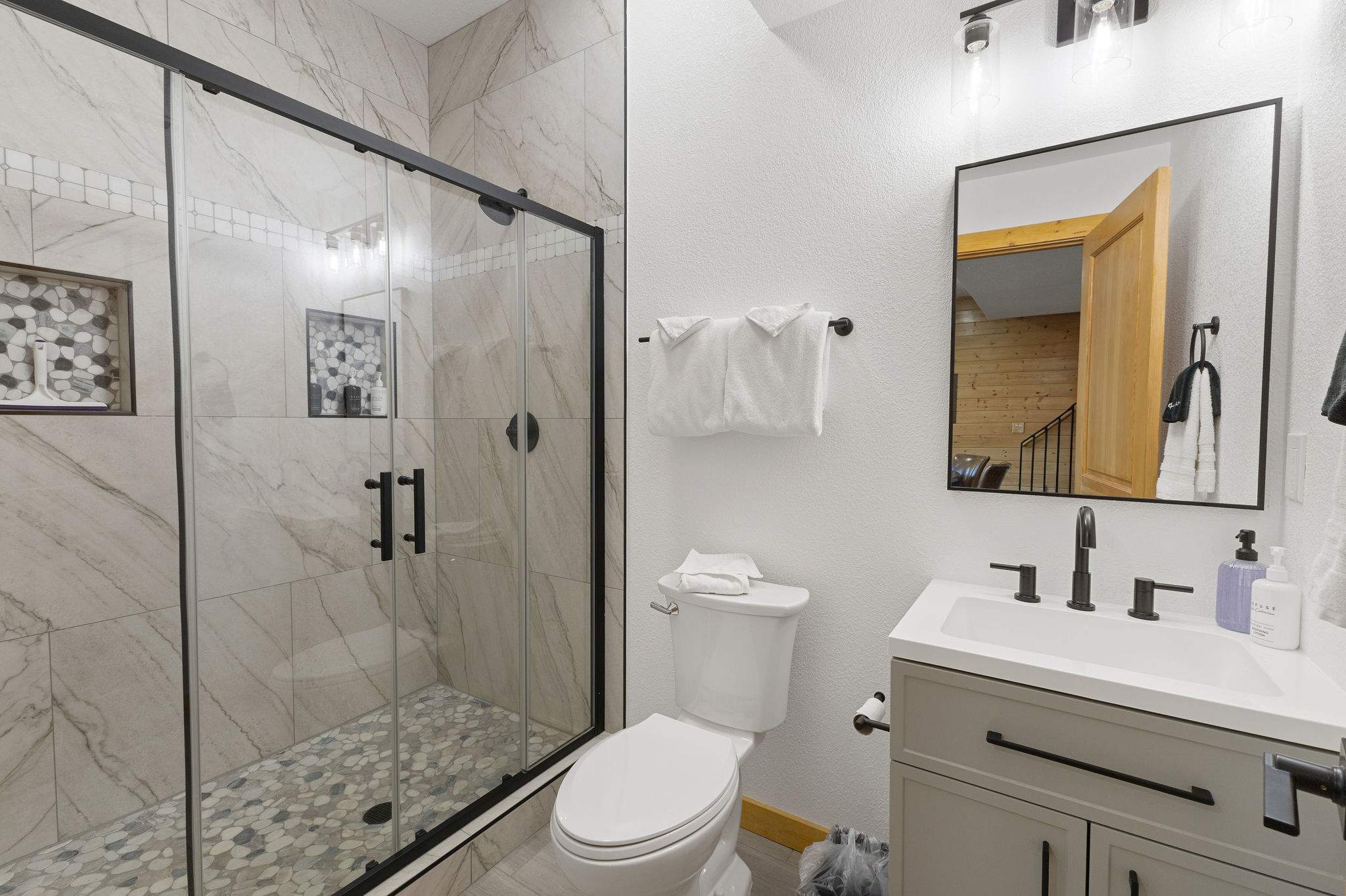 Guests can access the entire cabin as well as our playground and communal spaces on the resort property. There is a new community firepit and cornhole game in front of the Grand Lodge. The Lobby, located at the front of the property by Fall River Road, offers a paid guest laundry room, pamphlets for local attractions, and a coffee bar. You can access the door with your cabin code.