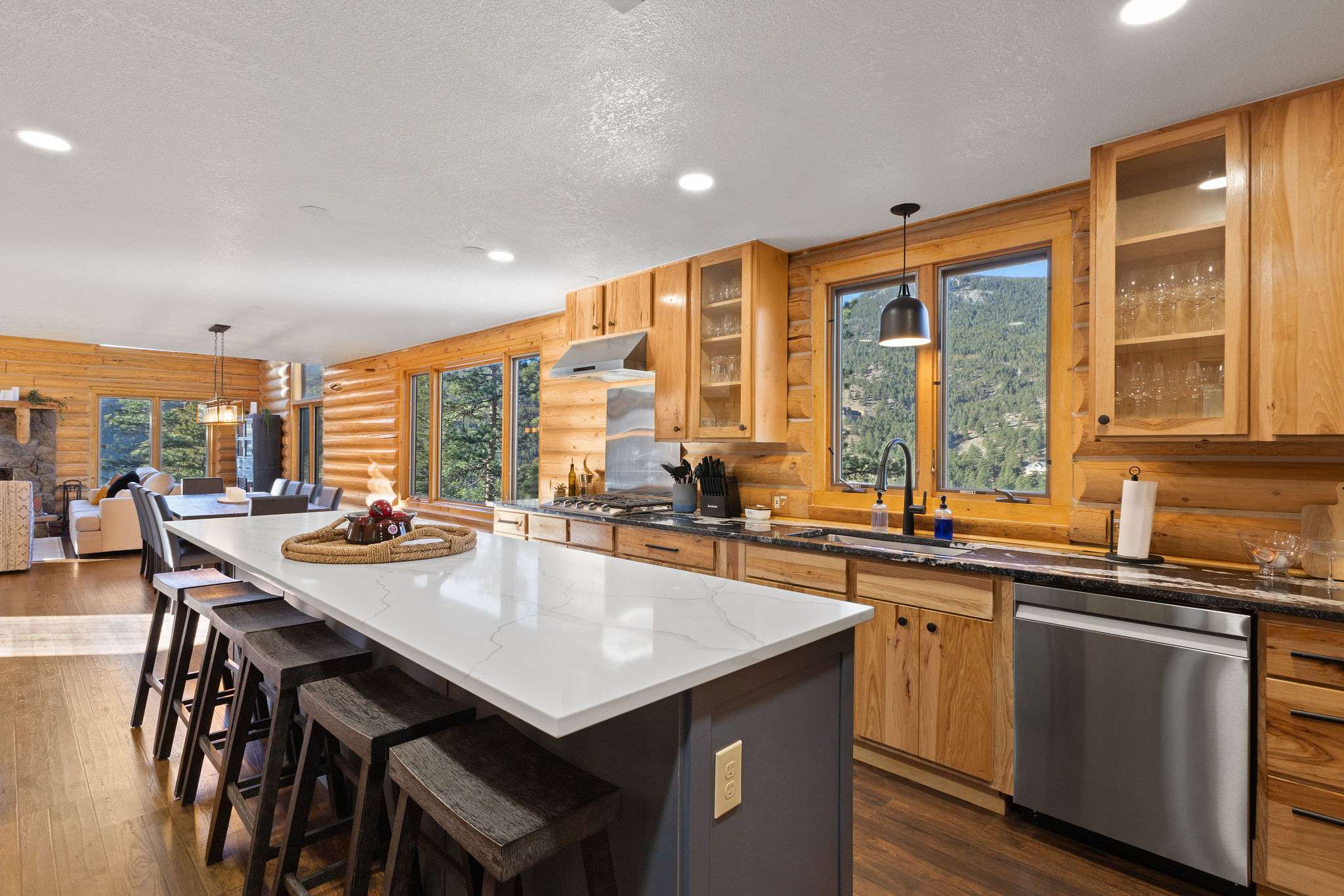 Escape to this luxury log cabin—your ultimate home base for adventure or a peaceful getaway. Newly updated and perched on a forested hillside, it offers breathtaking panoramic views and a perfect blend of rustic charm and modern amenities. 4WD REQUIRED IN WINTER. 5 Min Drive to Fall River Entrance of Rocky Mountain National Park 5 Min Drive to Downtown Estes Park 9 Min Drive to Estes Park Golf Course