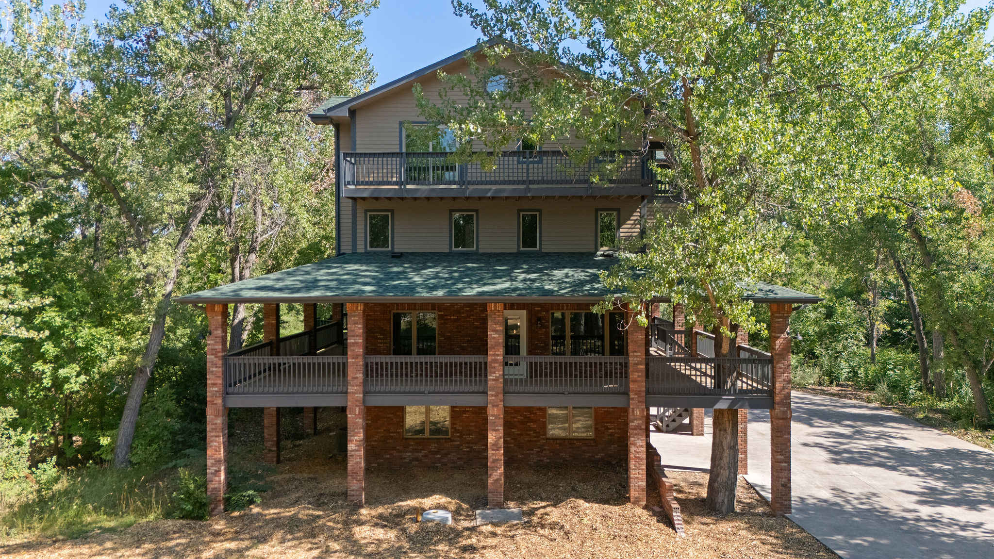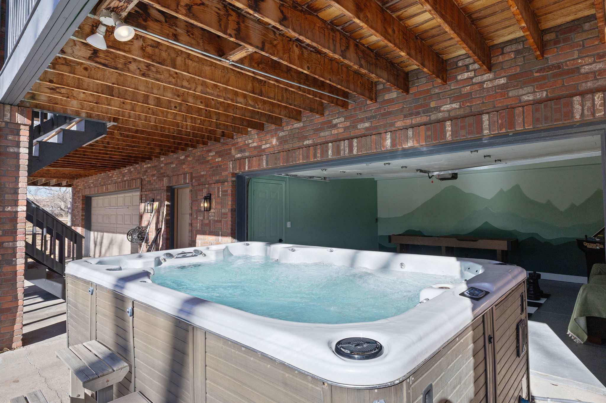 Secluded Luxury on a Grand Scale From the moment you arrive, the feeling is one of unparalleled privacy and space. With 8 bedrooms, 7 bathrooms, and 4 stories, this home is designed for seamless group living and an active, multi-level experience. This is the ultimate tree house mansion, offering a perfect balance between communal fun and personal relaxation. A Journey Through the Home Main Living & Gathering: This expansive level features two living rooms, a dining area, and a modern kitchen with new stainless steel appliances and multiple coffee bars. Fully stocked with premium cookware and gadgets like a crockpot and blender, it’s perfect for large groups. A propane grill is also available for easy outdoor dining. Top Level Game Area: This light-filled level is the ultimate hangout, featuring a pool table, arcade games (Ms. Pac-Man and The Simpsons), and a lounge with a large HD TV. It includes a convenient kitchenette/bar area and a guest bedroom with two queen beds and sweeping treetop views, plus a half bathroom. Private Bedroom Suites: The middle floors are home to the private bedroom suites, with the exception of one jack-and-jill bathroom. This thoughtful, multi-story layout ensures the home never feels crowded, even at full capacity. Ground Level: This floor is an entertainment hub, featuring a bedroom with bunk beds, a full bathroom, and dual laundry units. One garage has been transformed into a premier game room—complete with Big Buck Hunter, shuffleboard, and life-sized chess—which opens directly to an expansive hot tub and relaxation area. This home is built to accommodate large groups while ensuring everyone has their own private oasis. The fact that there are private bathrooms for each bedroom adds a significant layer of luxury and convenience, making it perfect for multiple couples or families. Your Private Forest Estate The multi-story design offers changing perspectives of the landscape from every floor. Whether you're enjoying coffee with a treetop view from an upper balcony, unwinding on the main-floor deck, or soaking in the extra-large hot tub tucked privately on the side of the home, your connection to nature is ever-present. With a full 5 acres to yourself, you'll feel completely cut off from the world. The massive windows throughout the home and the multiple, large decks bring the outdoors in, giving you a beautiful, elevated view that truly makes you feel like you're living among the trees. This is a rare chance to enjoy total privacy and the sounds of nature without giving up the convenience of being close to the city. In short, this home promises more than just a stay—it offers an expansive and memorable experience. It’s perfect for those seeking a luxurious, spacious, and well-designed home that can comfortably host a large group, with a sense of adventure built into its very structure.